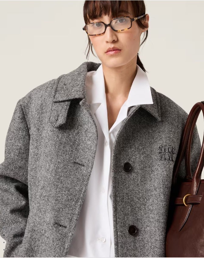 미우미우 [ miu ] 수입 여성 싱글브레스트 셰브론 코트
