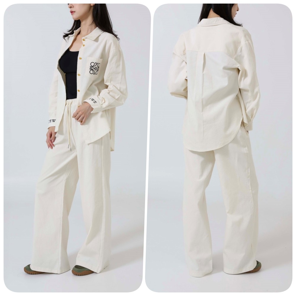 로에베 [ L*EWE ] 수입 아나그램 자수 로고 코듀로이 셔츠 & 팬츠 SET -화이트-