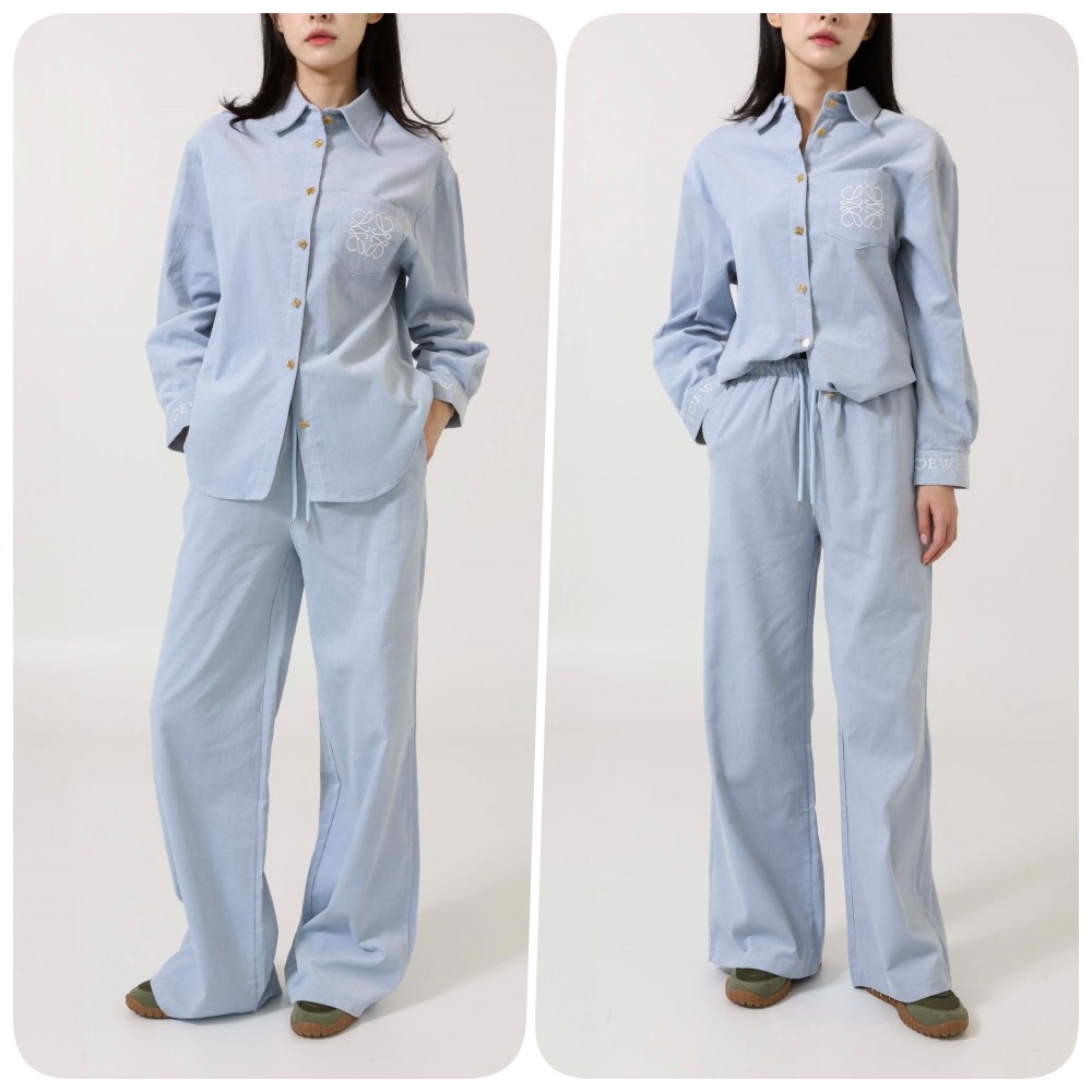 로에베 [ L*EWE ] 수입 아나그램 자수 로고 코듀로이 셔츠 & 팬츠 SET -스카이블루-