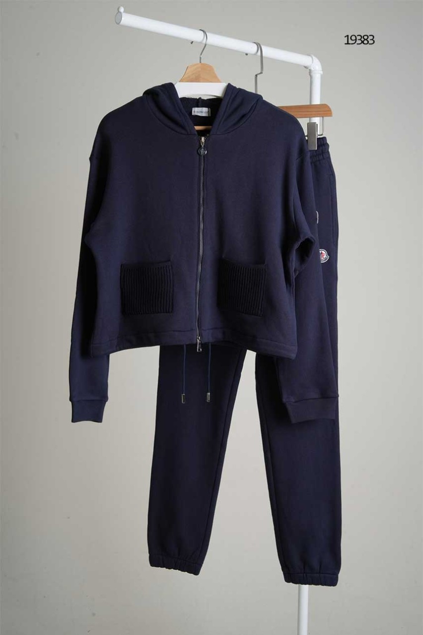 몽클레어 [MONCLER] 여성 카디건 니트 디테일 코튼 집업 후디 & 팬츠 세트