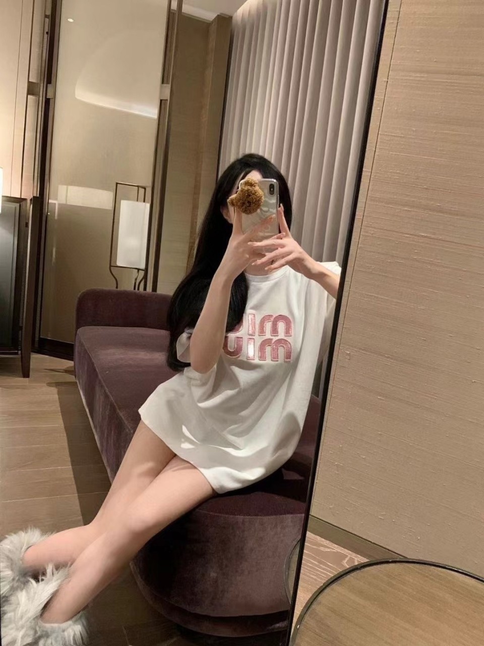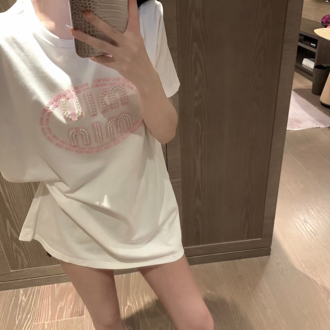 [MIUMIU] 미우미우 수급 핑크 진주로고 티셔츠