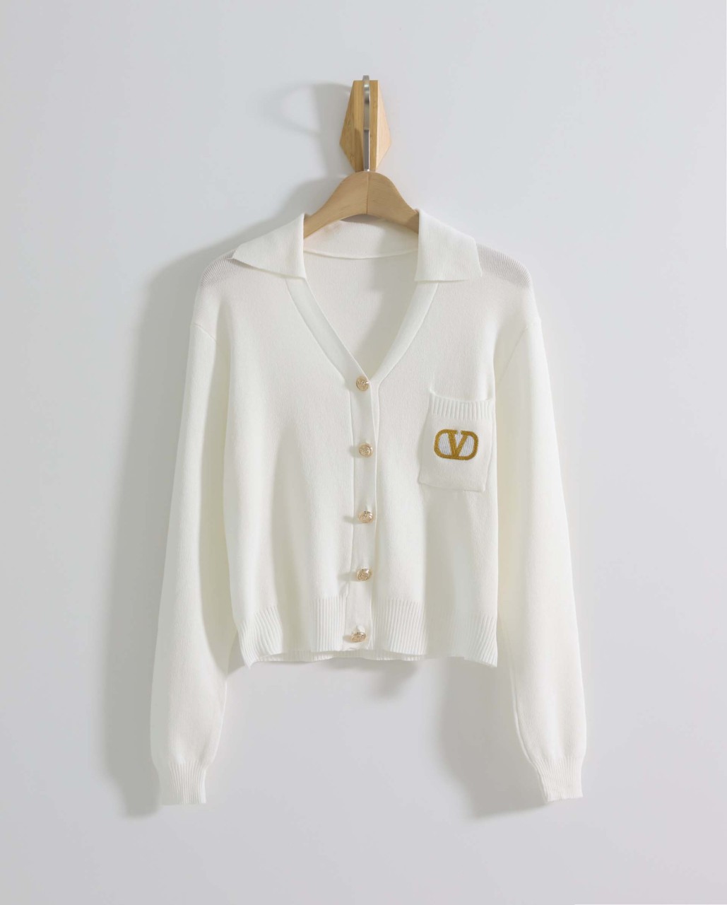 발렌티노 [ V.L.T.N ] V넥 골드 로고 자수 가디건