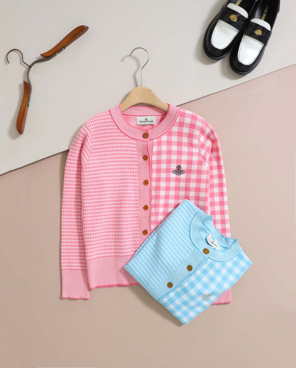 비비안웨스트우드 [ V*vienne Westwood ] 수입 로고 자수 체크 가디건
