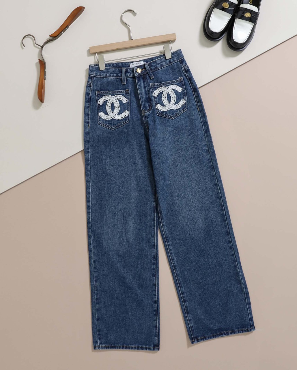 샤넬 [ C*ANEL ] 수입 앞포켓 CC로고 세미 와이드 진