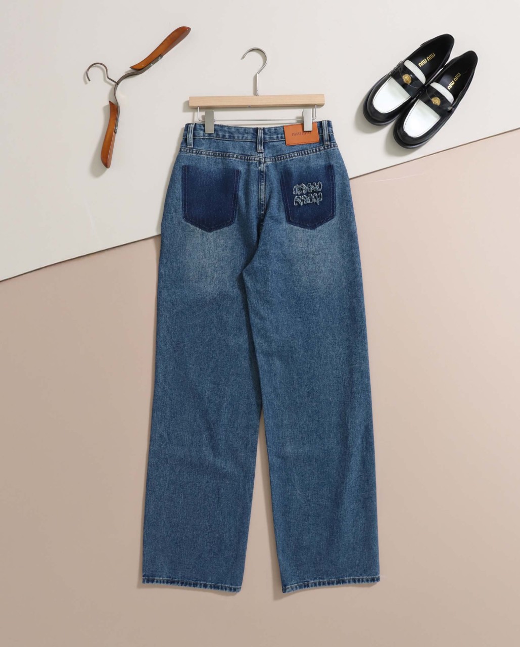 미우미우 [ miu ] 수입 페이크 포켓 엠보로고 와이드 진