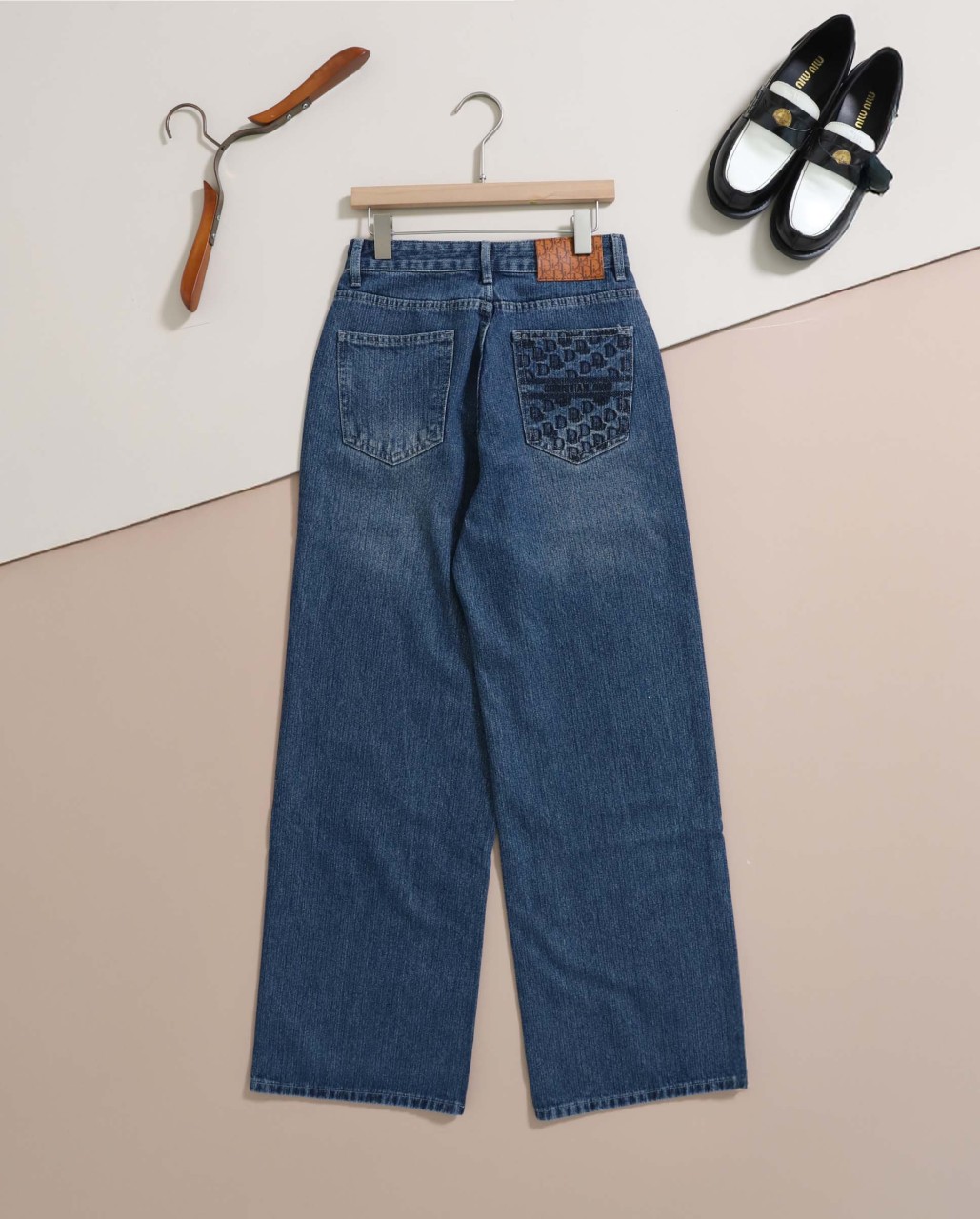 디올 [ D*OR ] 수입 포켓 멀티 자수 로고 와이드 진