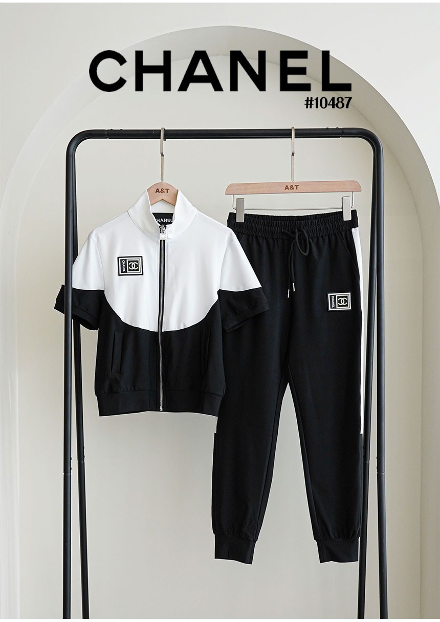 [CHANEL] 샤넬 여성 투톤 배색 반팔 집업&조거셋
