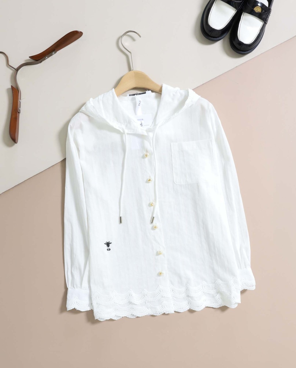 디올 [ D*OR ] 꿀벌 레이스 긴팔 후드 블라우스