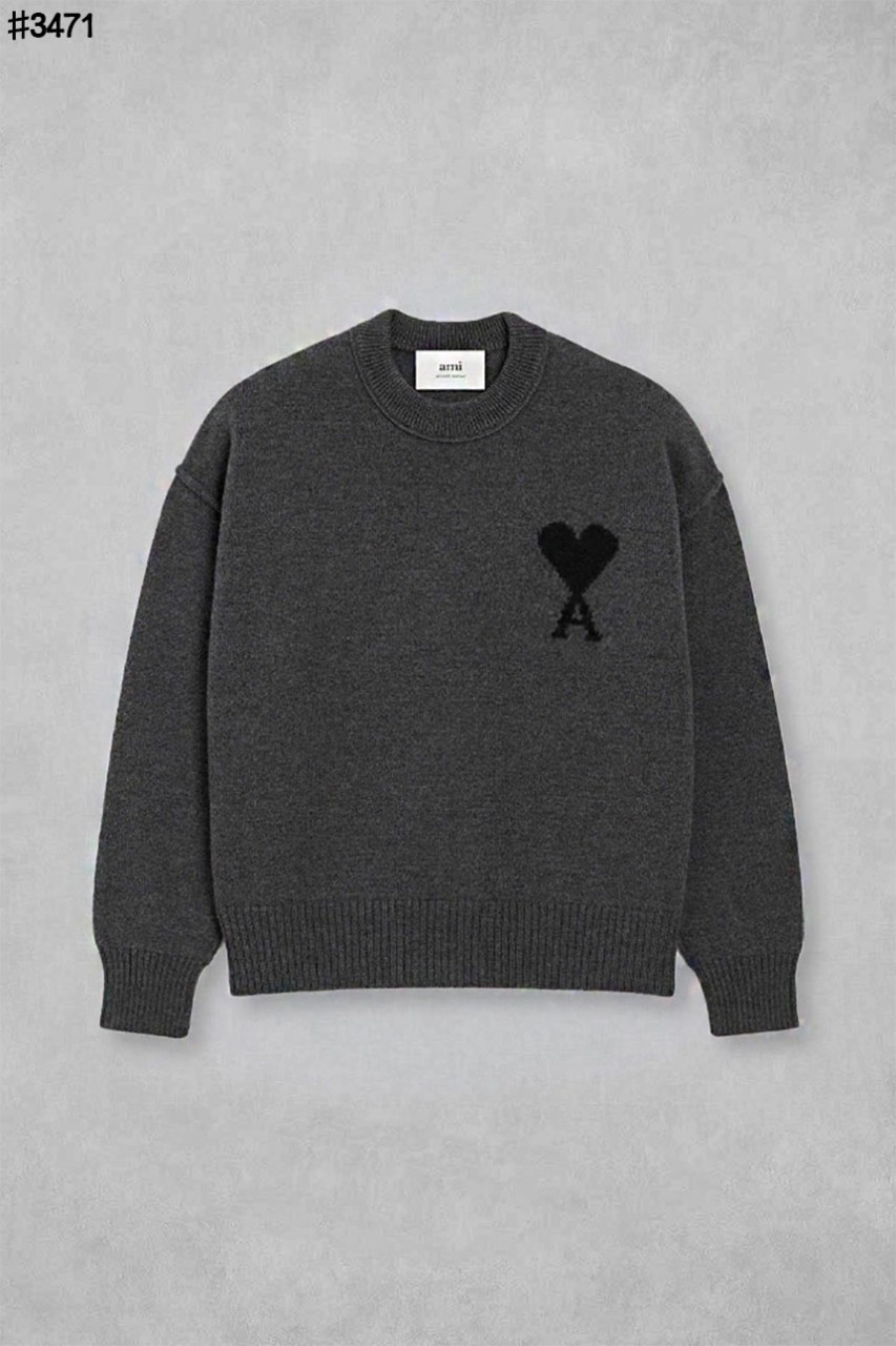 [AMI] 아미 드 꾀흐 블랙 하트 펠트 메리노 울 크루넥 스웨터