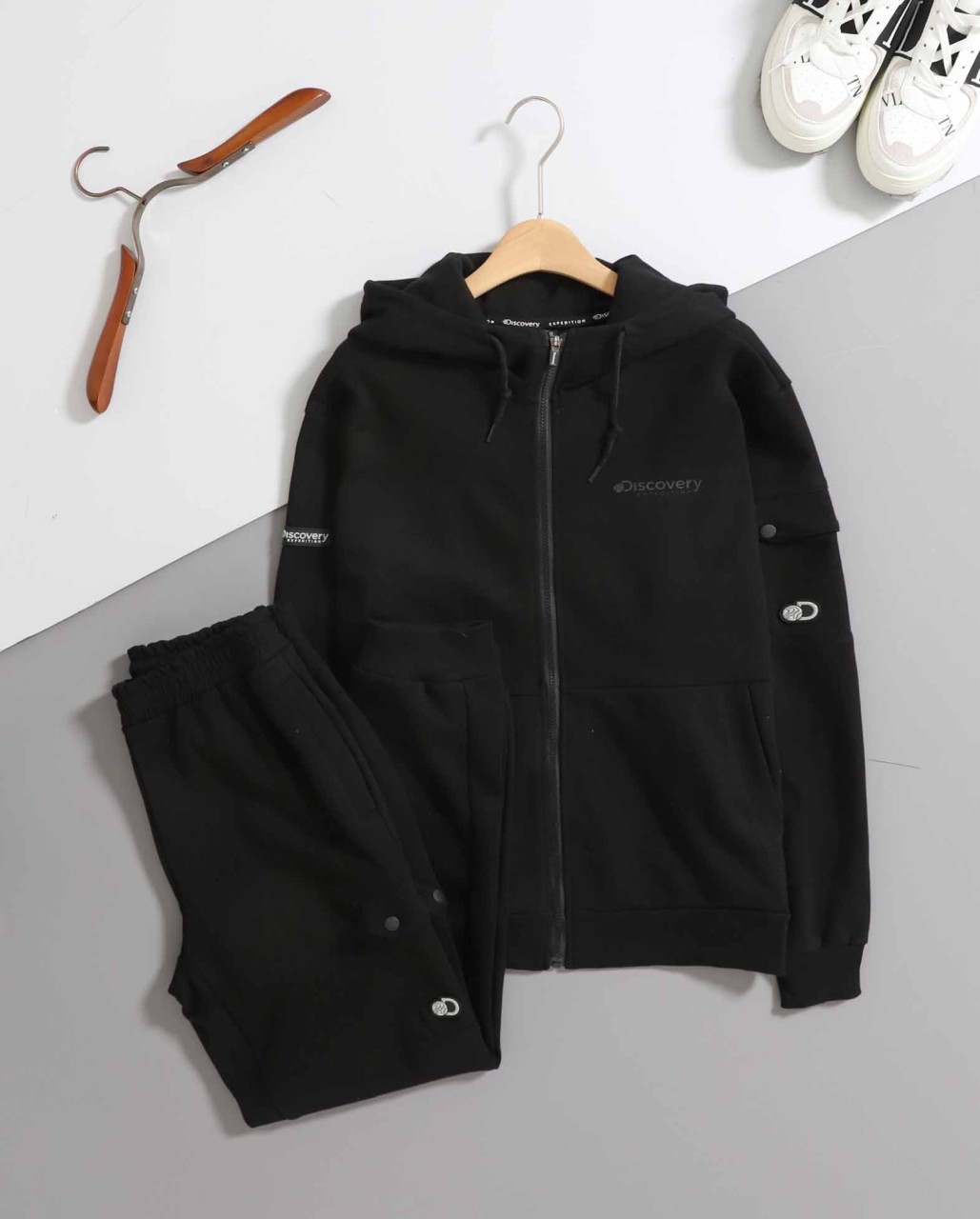 디스커버리 [ D*scovery ] 카고 포켓 후드 집업 & 조거팬츠 set
