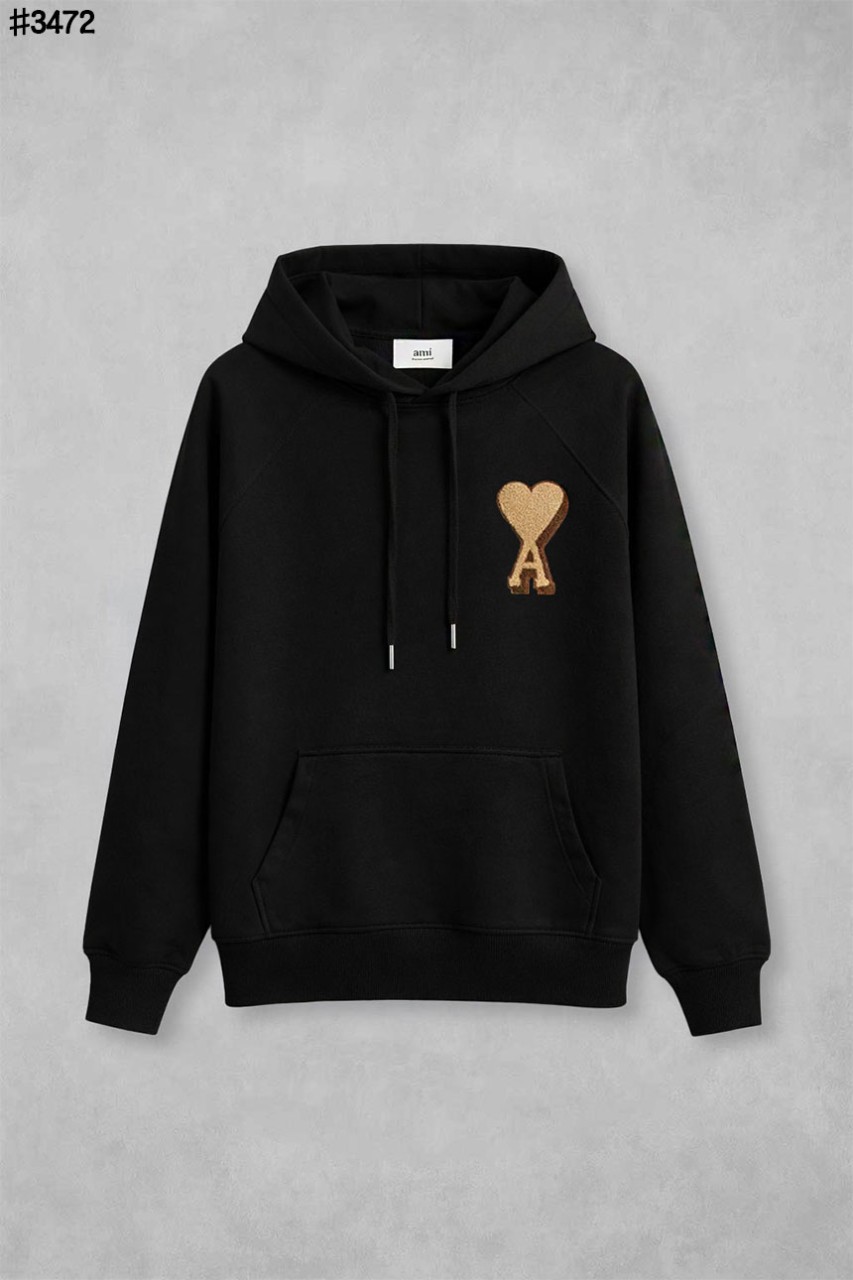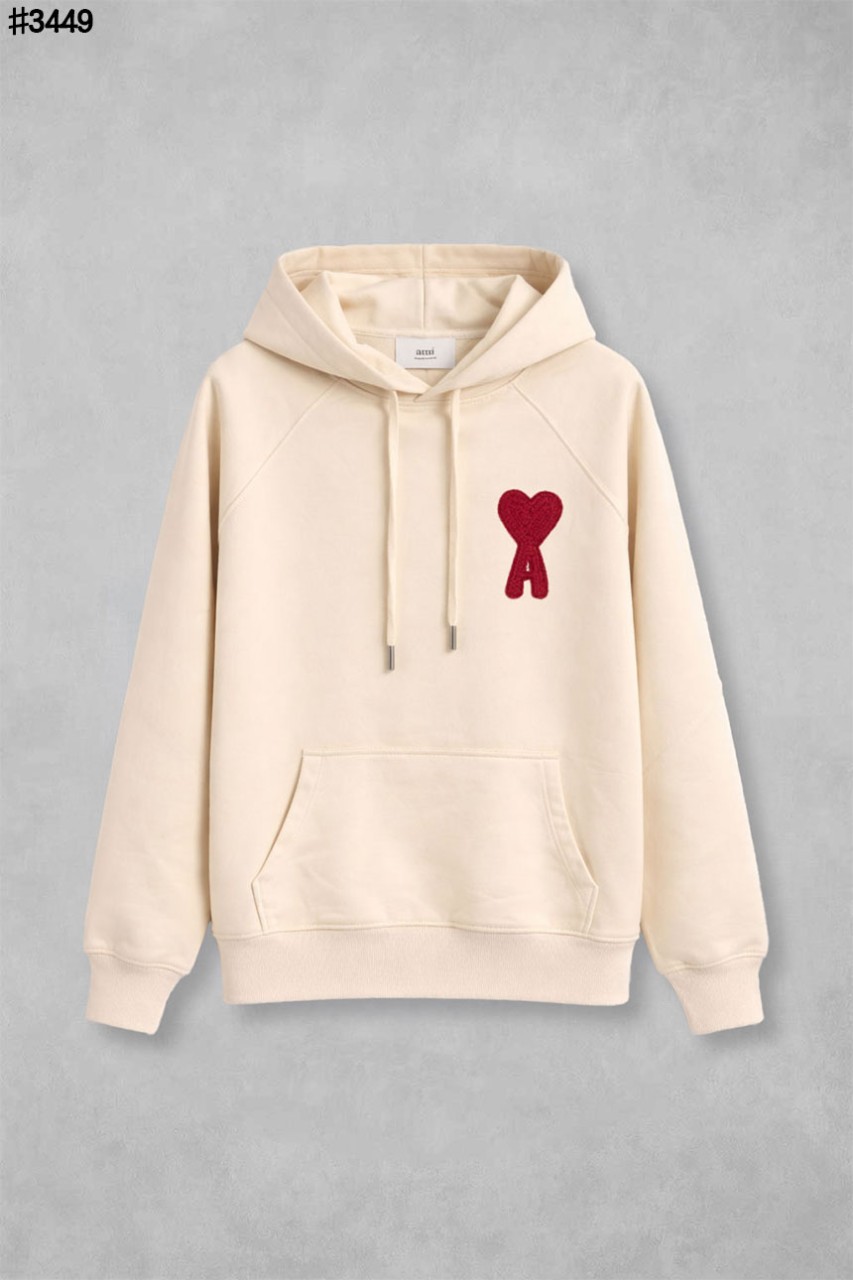 [AMI] 아미 드 꾀흐 브라운 하트 래글런 코튼 플리스 후드 티셔츠