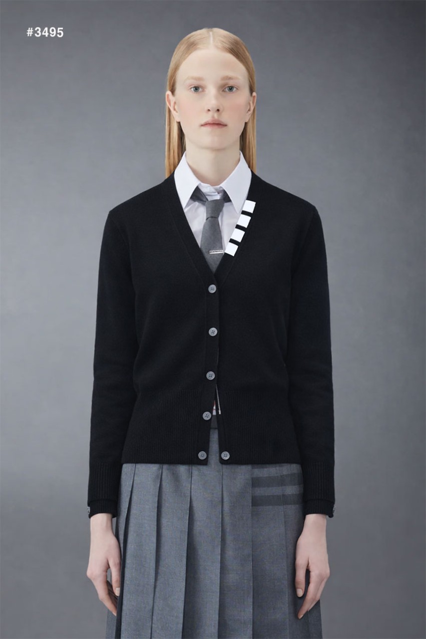 [THOM BROWNE] 톰브라운 여성 사선 저지 스티치 브이넥 가디건
