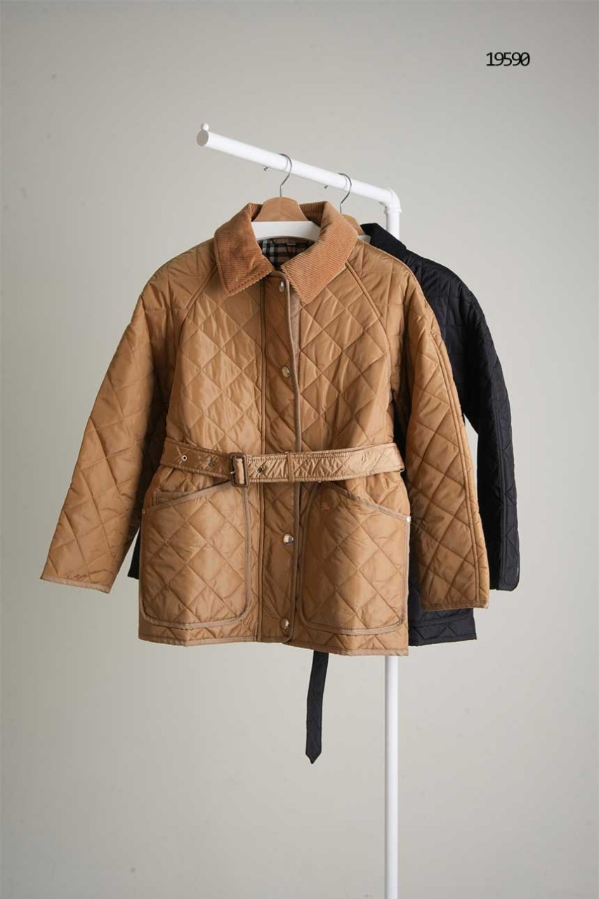 [BURBERRY] 버버리 다이아몬드 퀄팅 나일론 벨티드 여성 자켓
