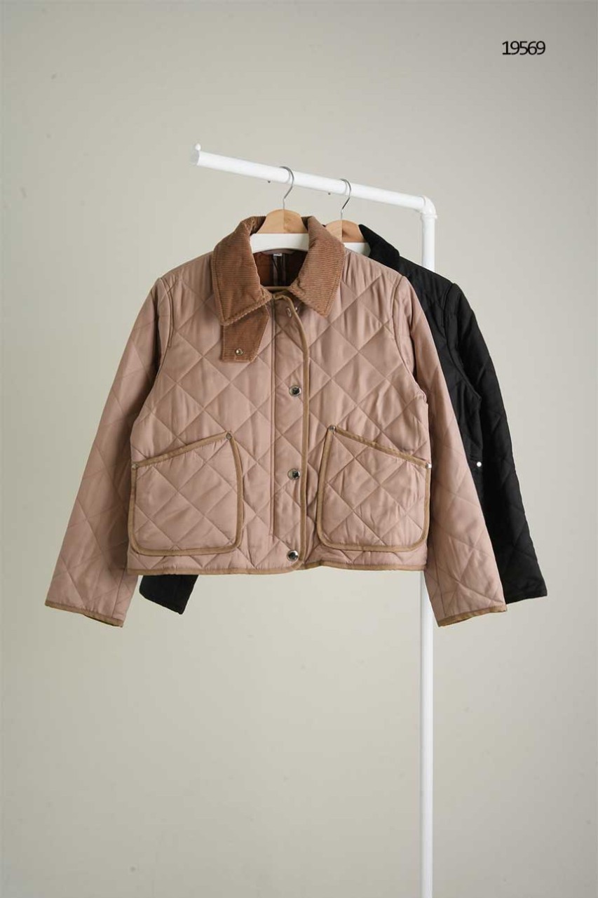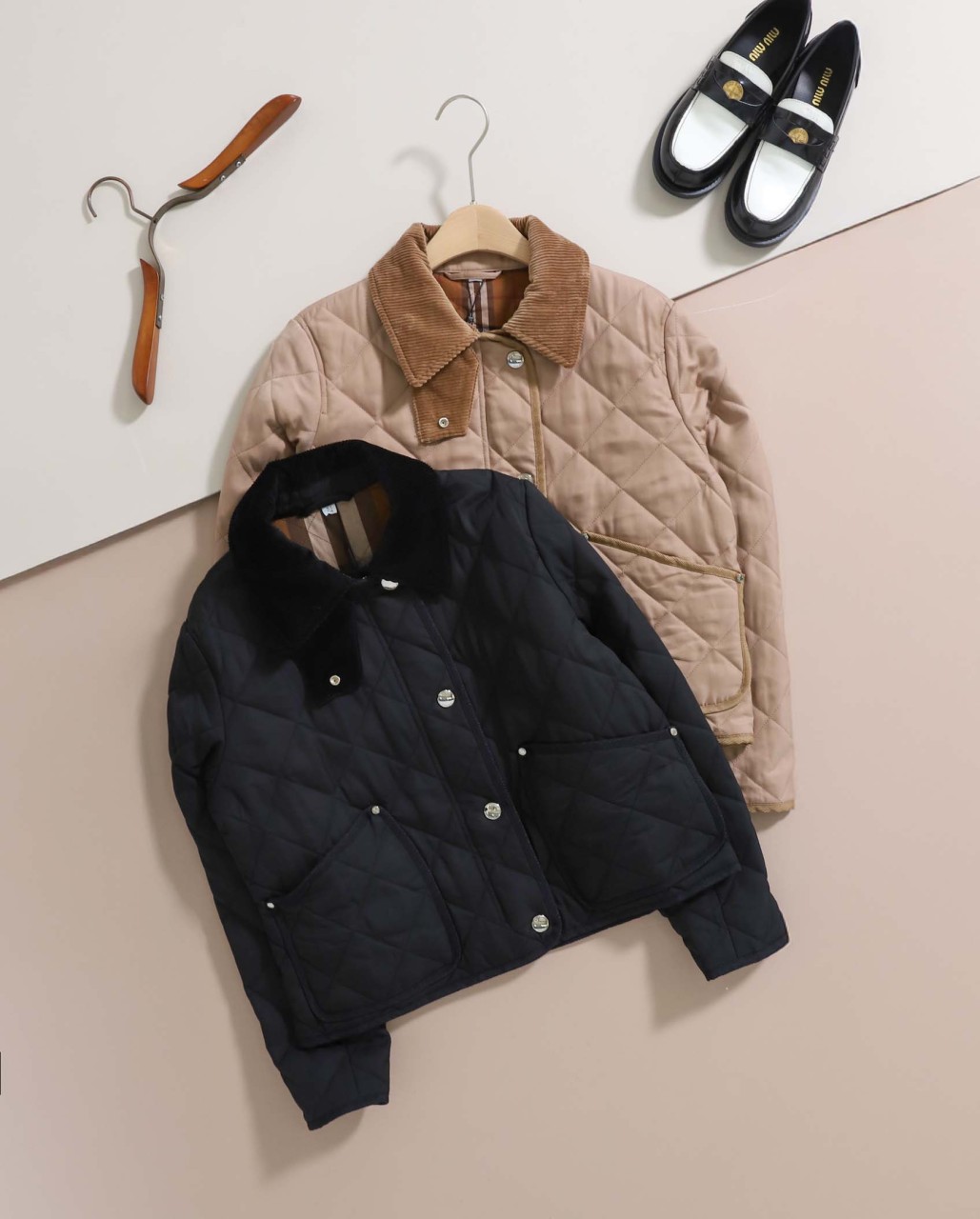[BURBERRY] 버버리 코듀로이 카라 크롭 퀼팅 자켓