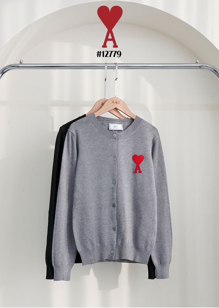 [AMI] 아미 드 꾀흐 블랙 하트 울 자카드 가디건