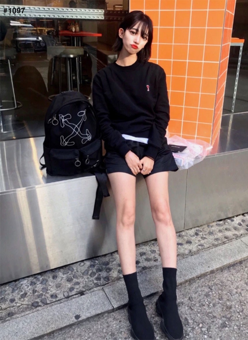[AMI] 아미 여성 스몰 화이트 하트 패치 기모 맨투맨