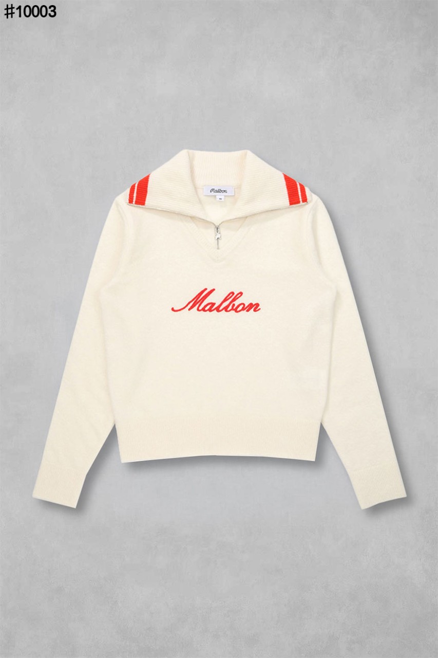 [MALBON] 말본 레이어드 집업 카라 니트 탑