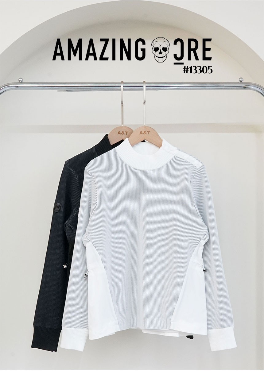 어메이징크리 [ AMCR ] 우먼 아코디오 하이브 모크넥 티셔츠
