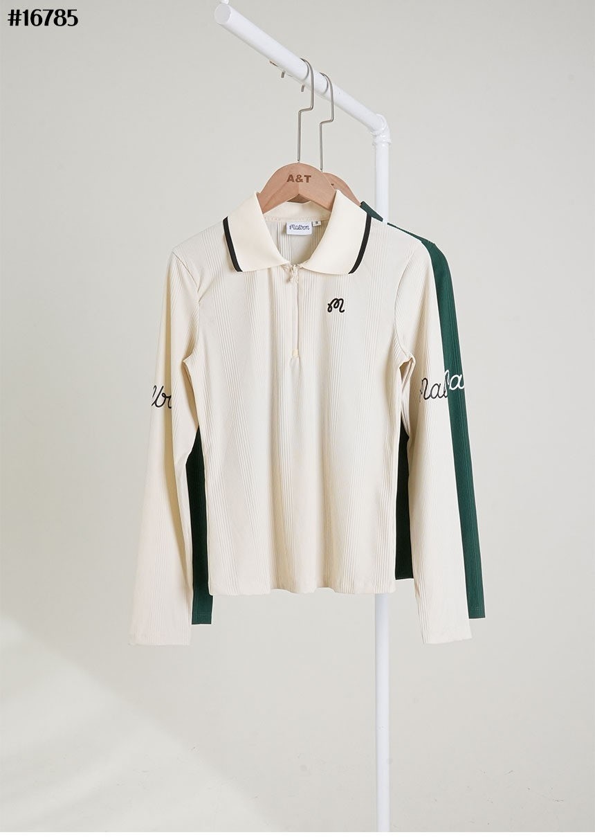 [MALBON] 말본 M 스크립트 하프 집업 골지 롱 슬리브 티셔츠