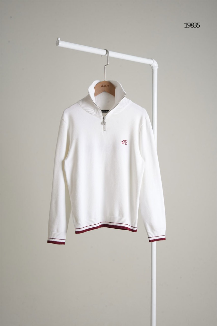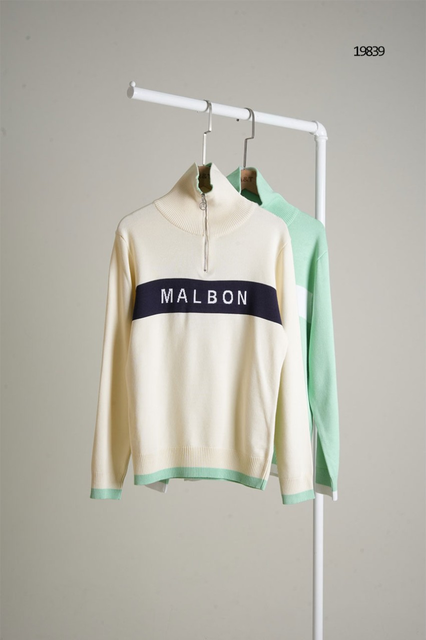 [MALBON] 말본 여성 이니셜 배색 하프 집업 니트 스웨터
