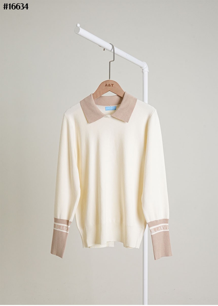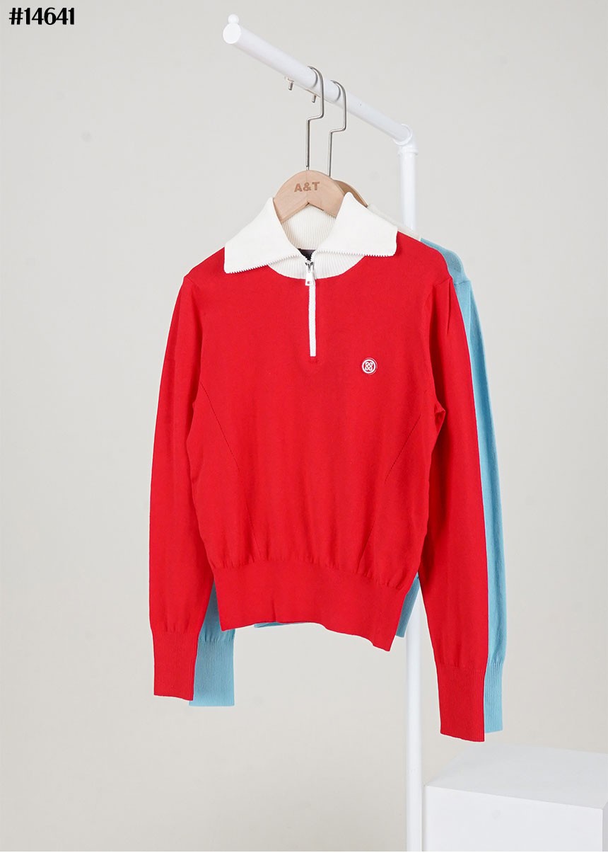 [LANVIN BLANC] 랑방블랑 골프웨어 컬러 블록 카라 니트 탑