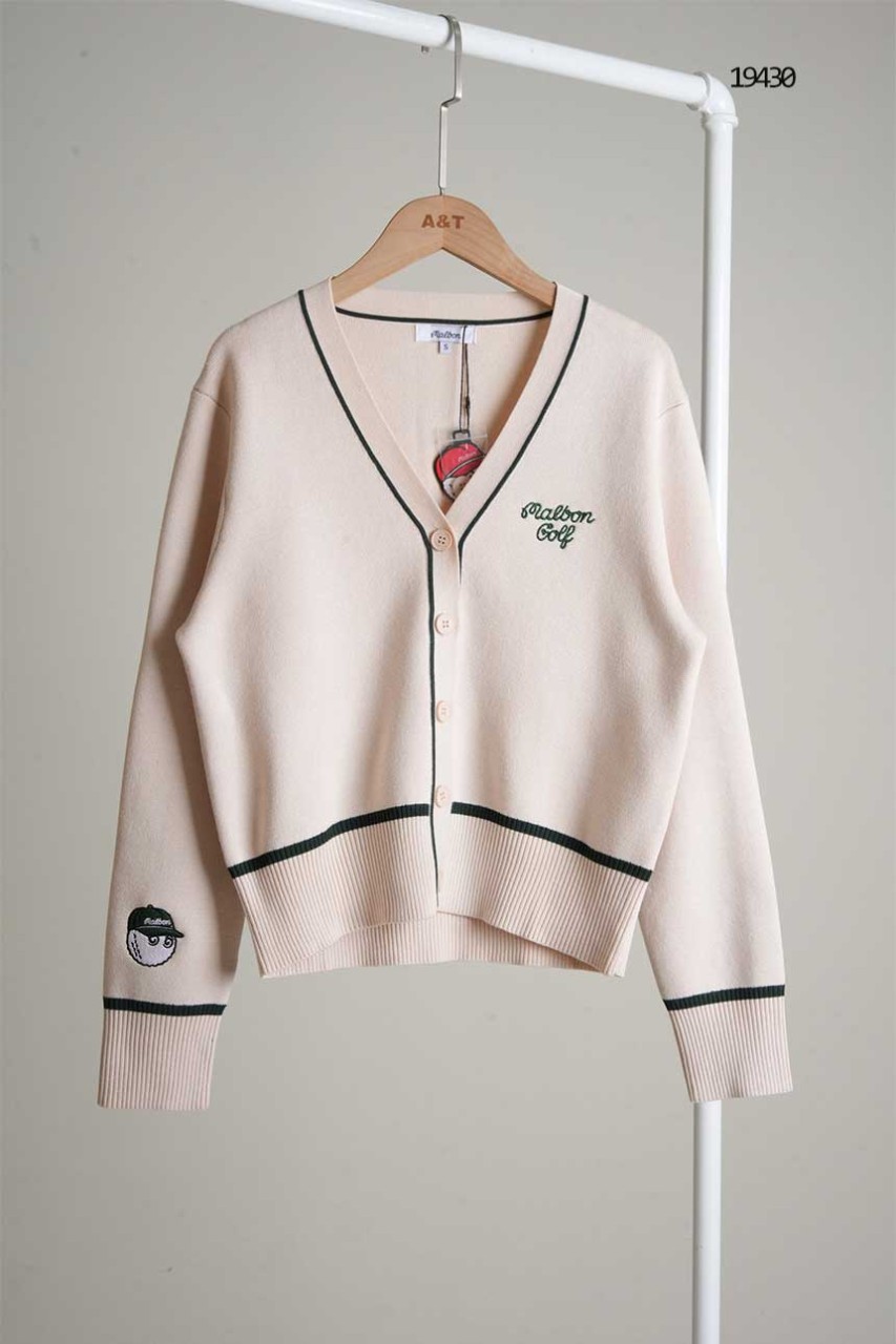 [MALBON] 말본 볼캡로고 V넥 버튼 니트 가디건